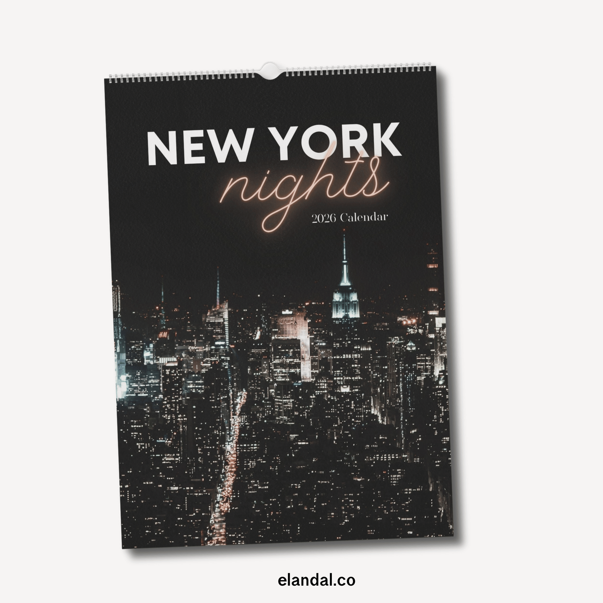 Disfrute de Nueva York de noche con este elegante calendario de pared impreso de 2025.