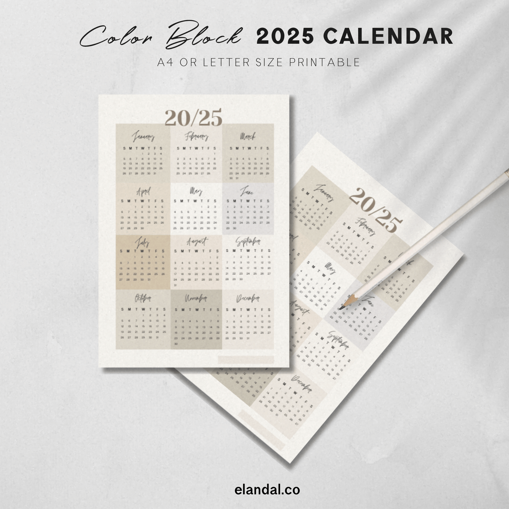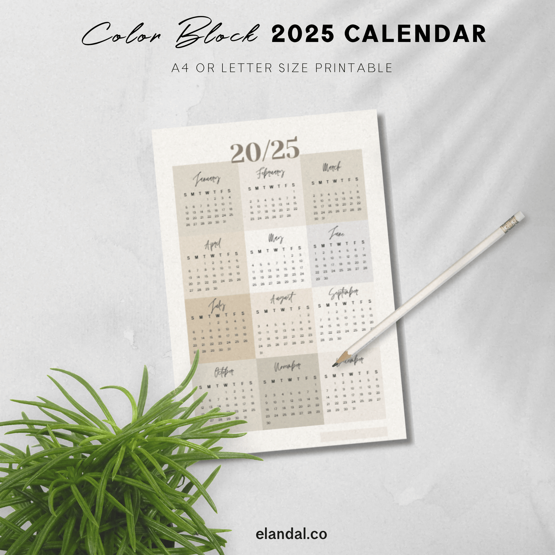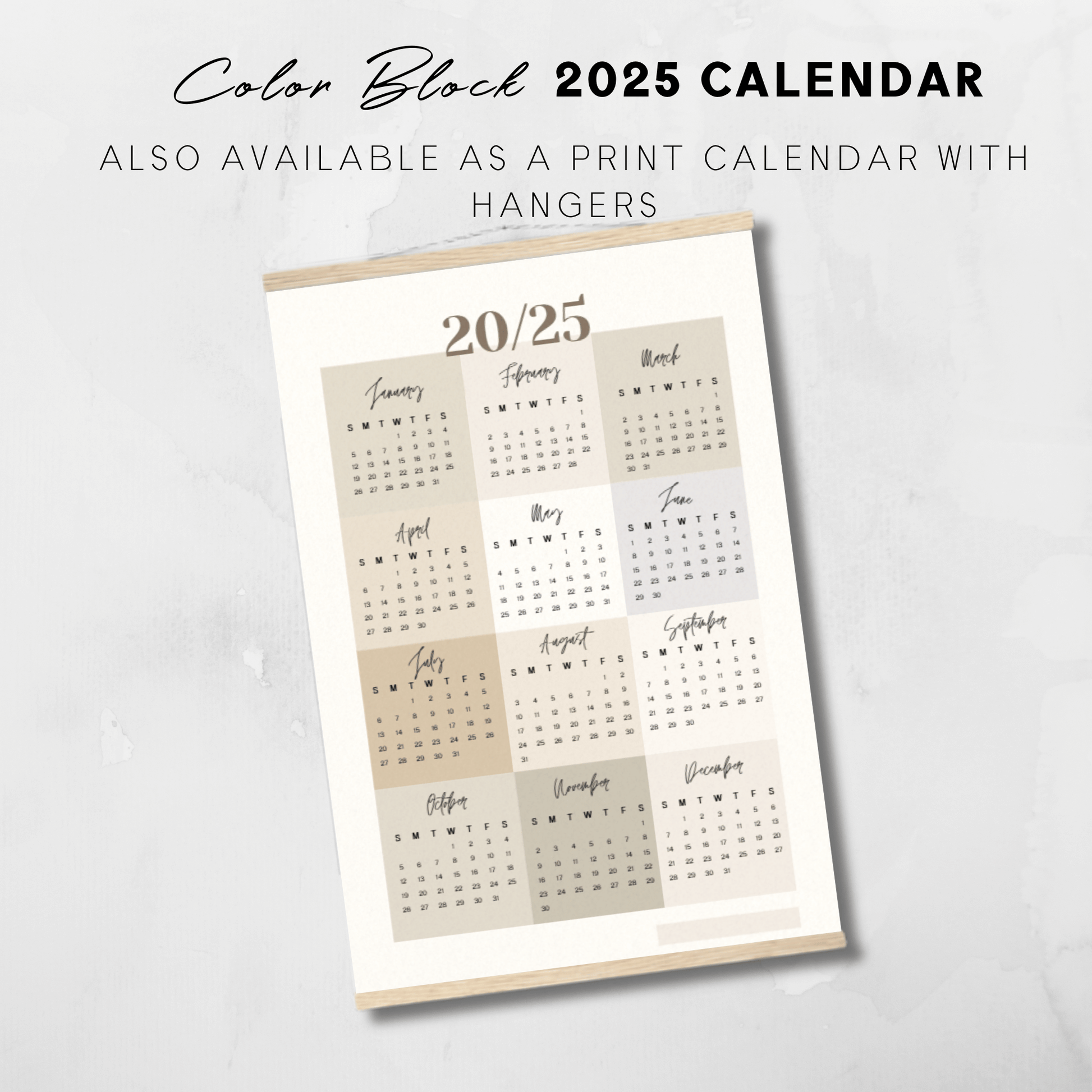 Printable 2025 Neutral Color Block Poster Calendar