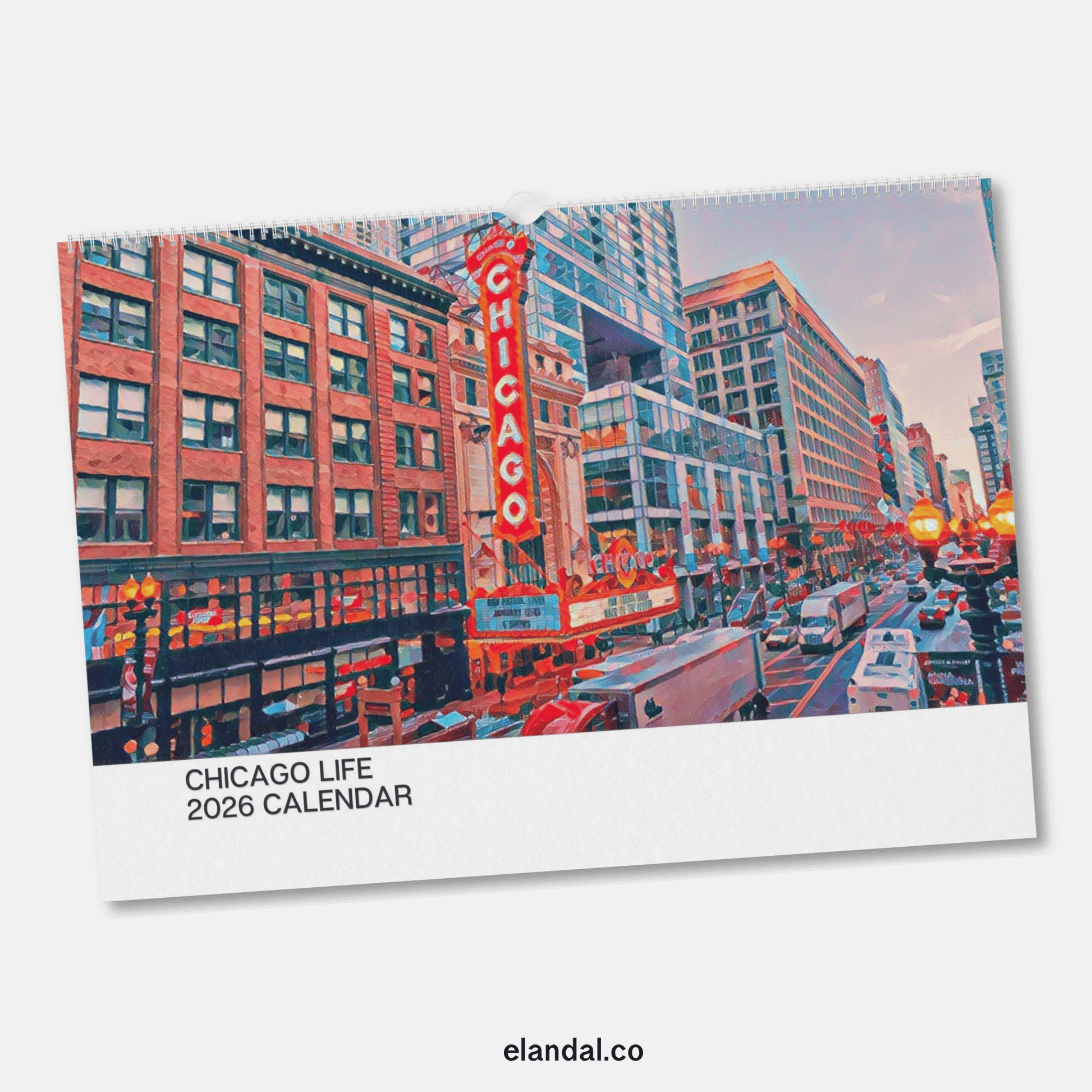 Celebrate the Windy City with this illustrated calendar. Also available as a digital download.