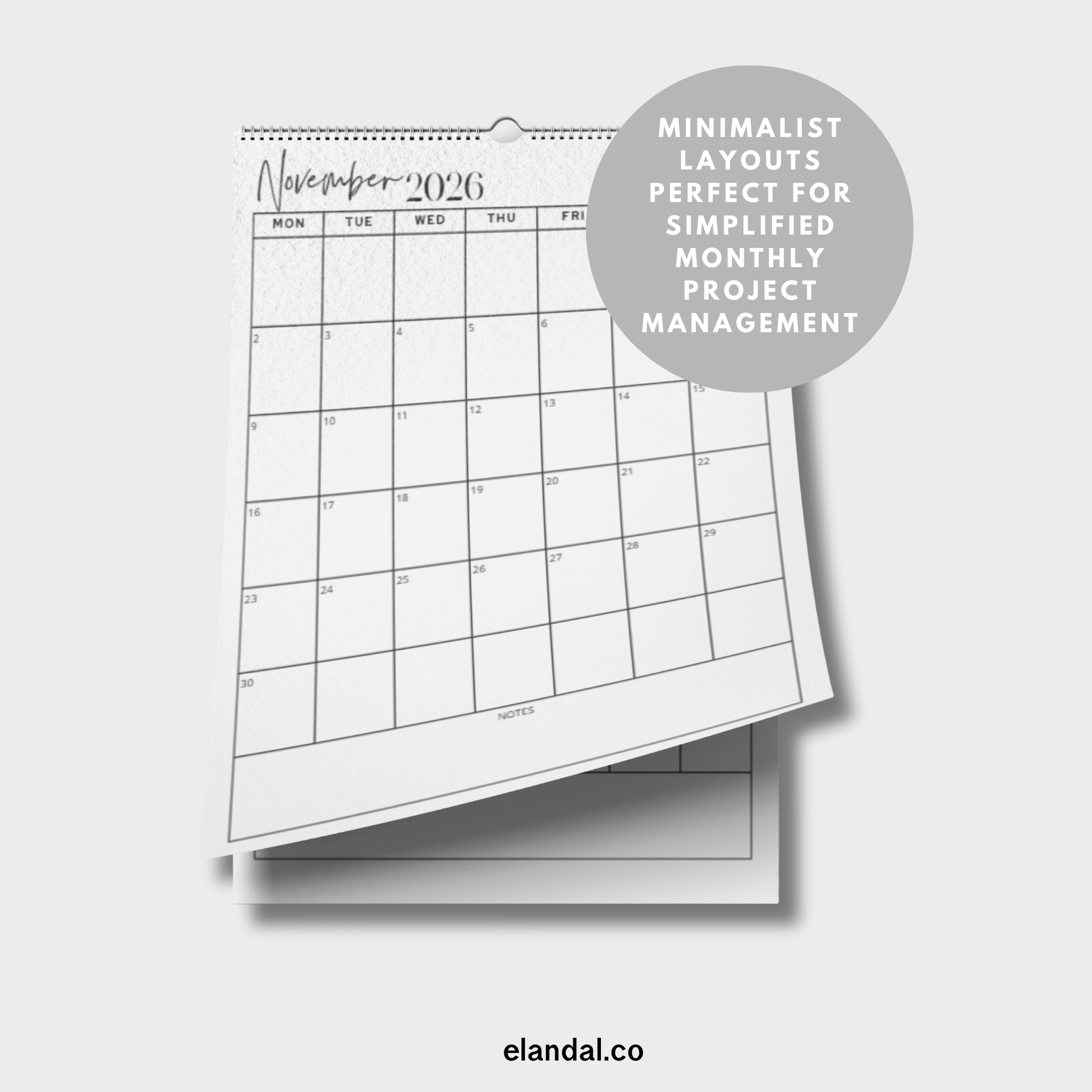 Keep track of your busy day with this minimally designed vertical print calendar which features space for note-taking.
