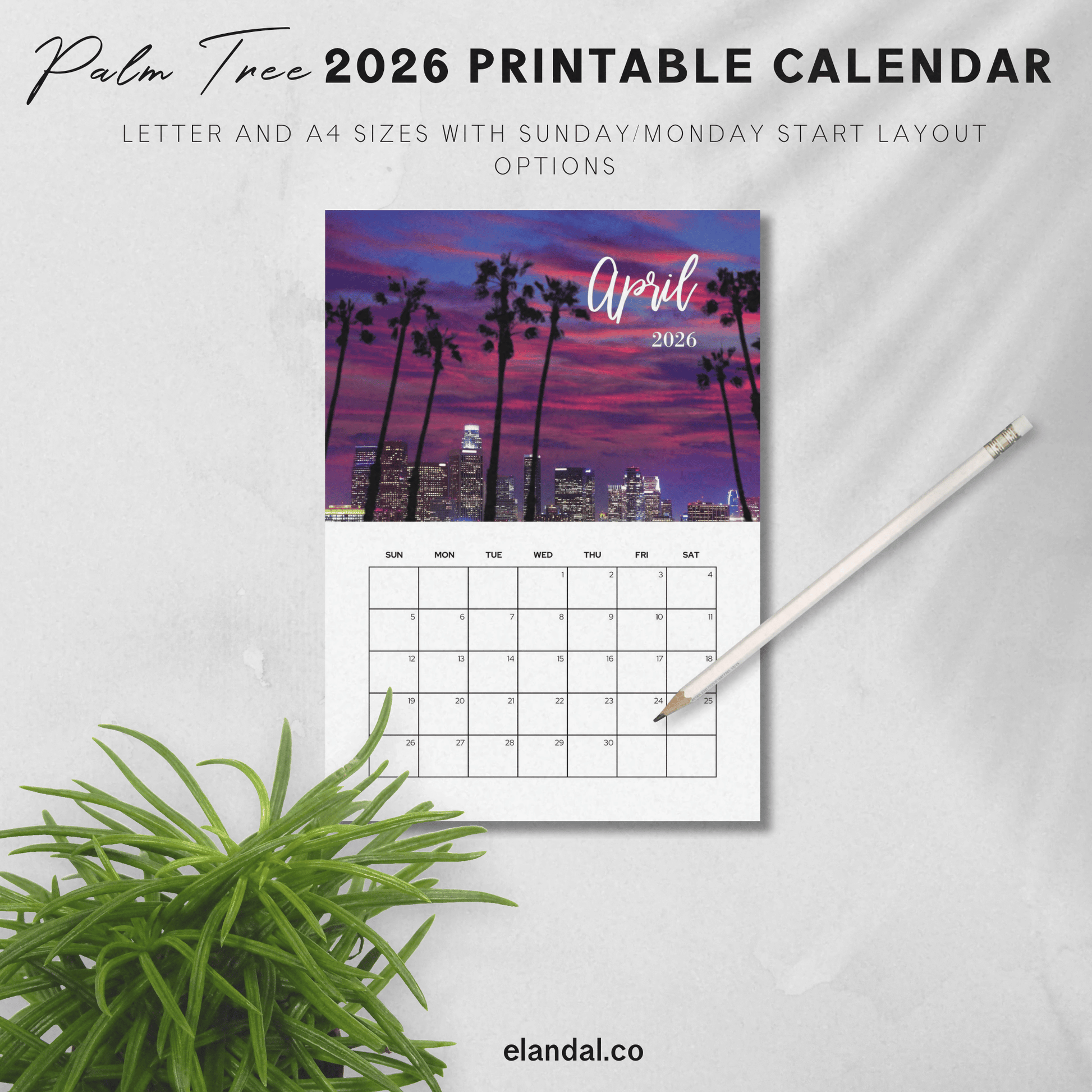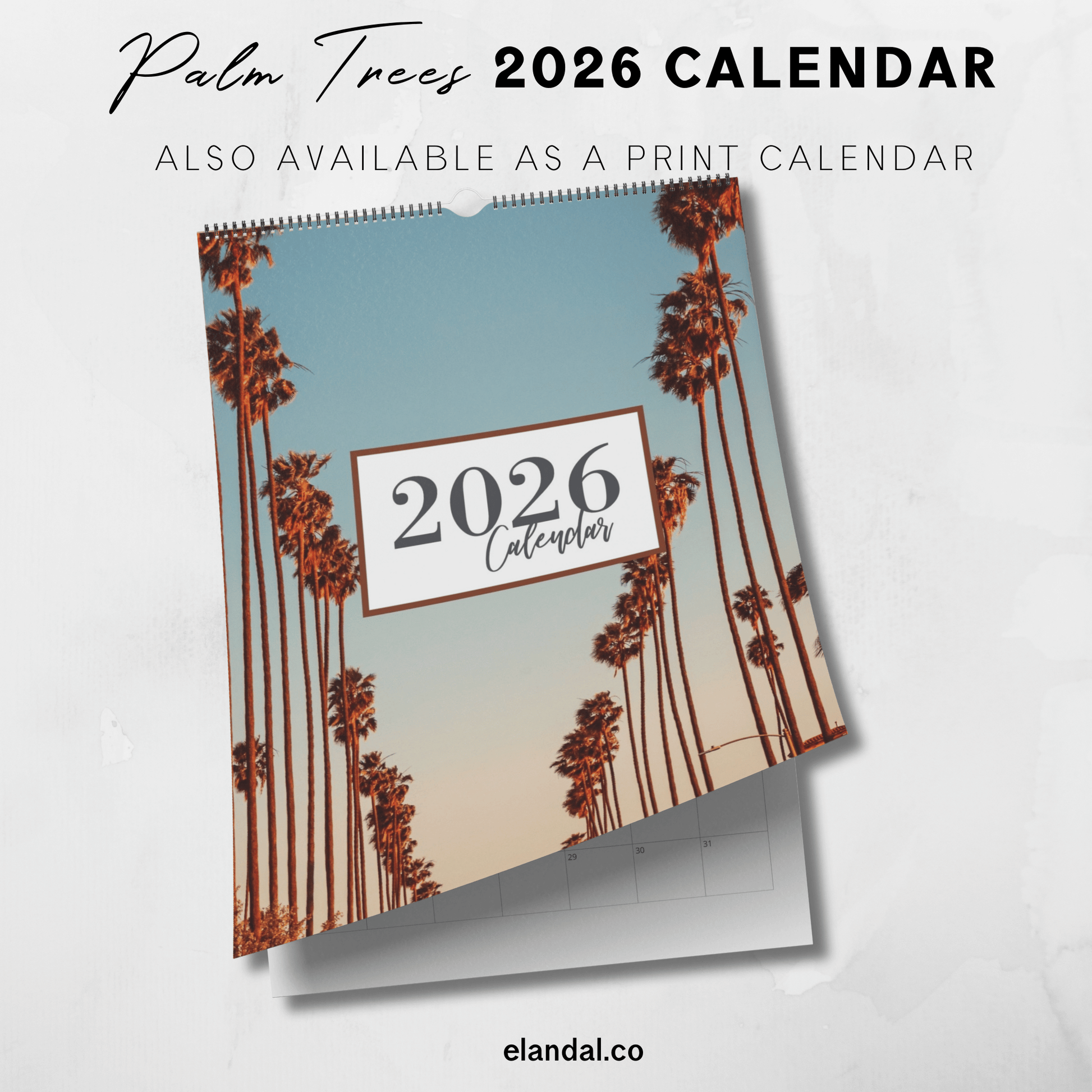 Escape to a tropical destination anytime with this stylish palm tree printable calendar.