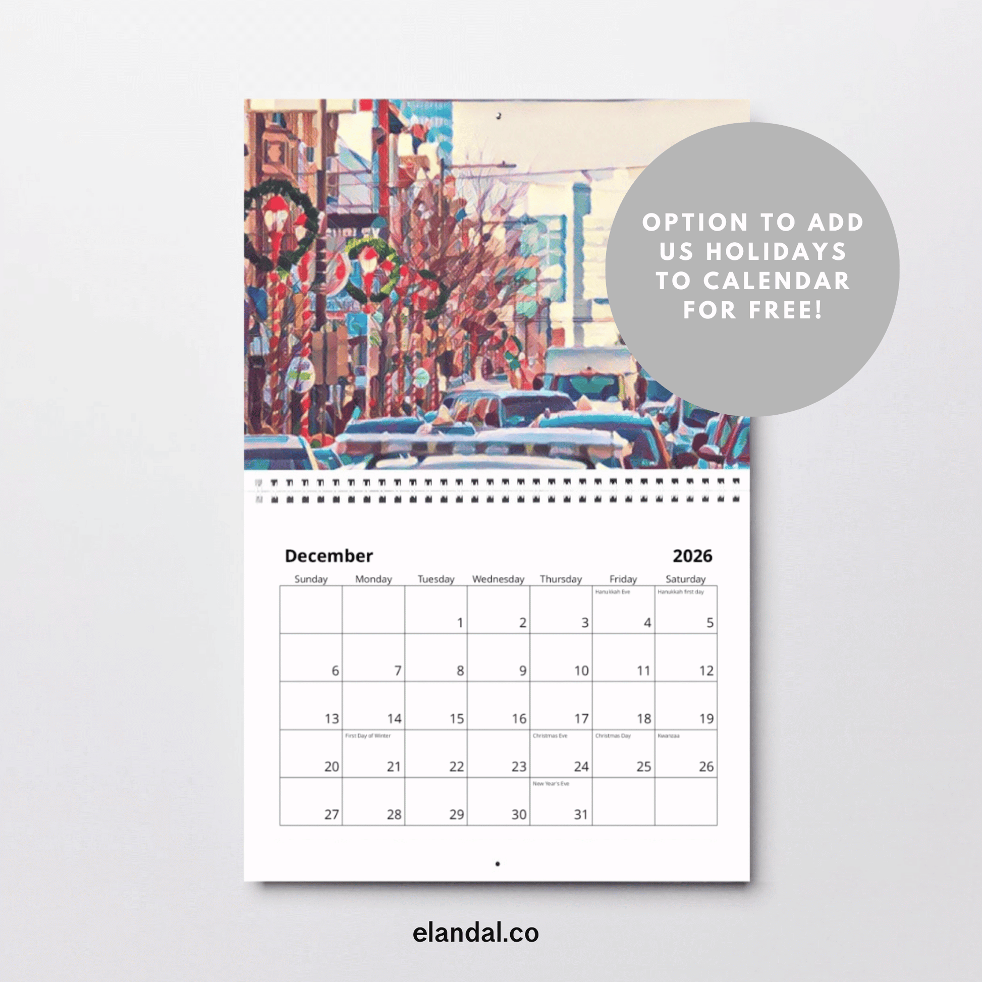 Philadelphia is the home of cheesesteaks, South Street, the Liberty Bell, and the Rocky steps. Celebrate the city of brotherly love with this illustrated calendar. Also available as a digital download.